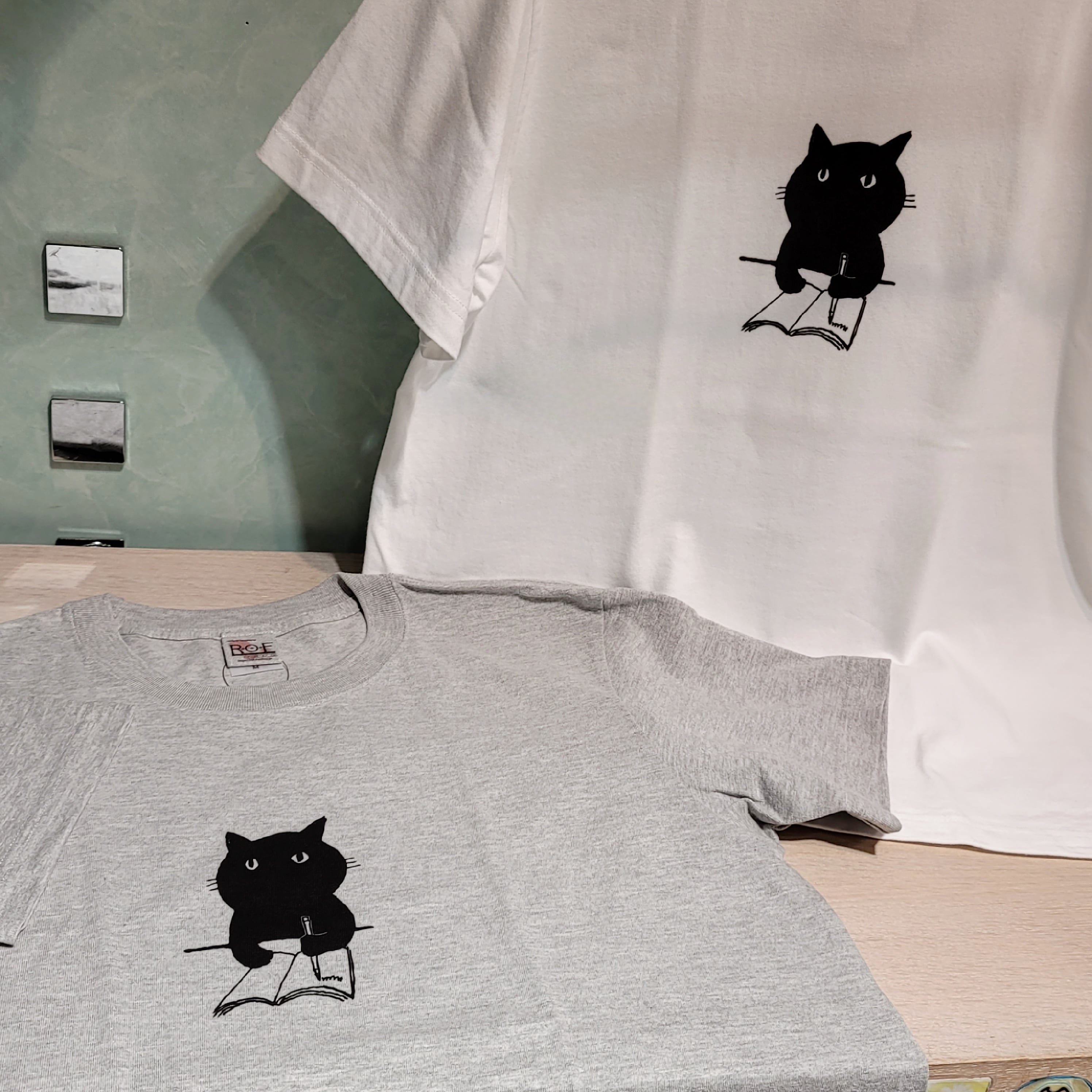勉強している黒猫、2行目まで頑張ったけど、もう疲れてゴロンとしています!