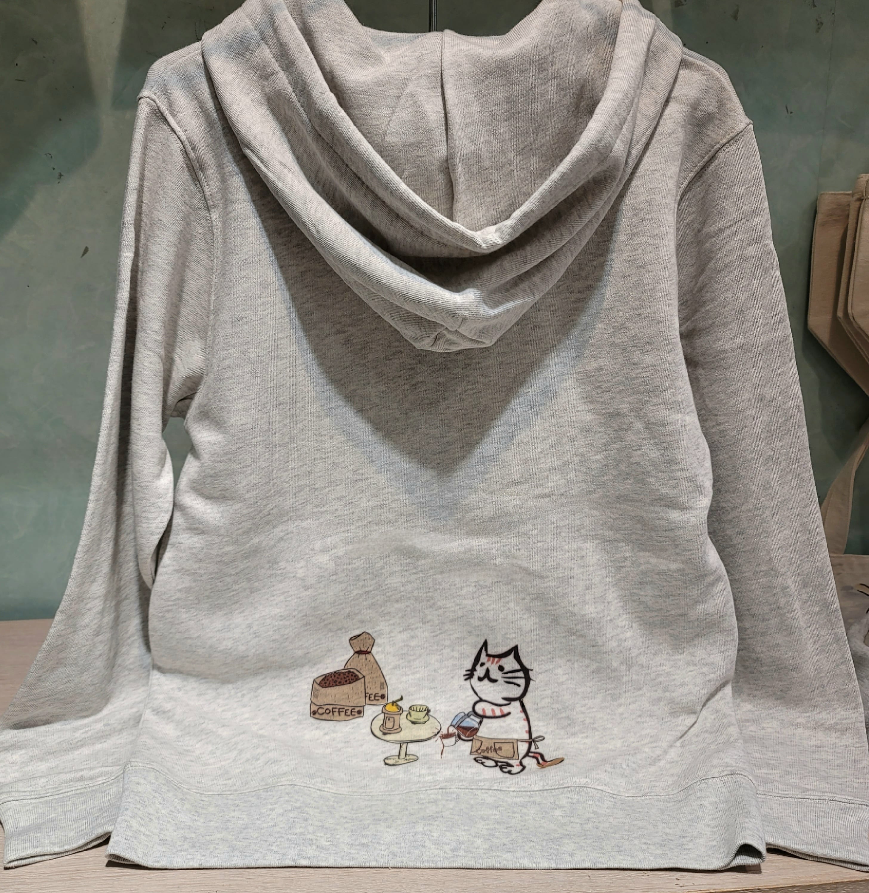 ラテねこ メンズ ジップアップパーカー