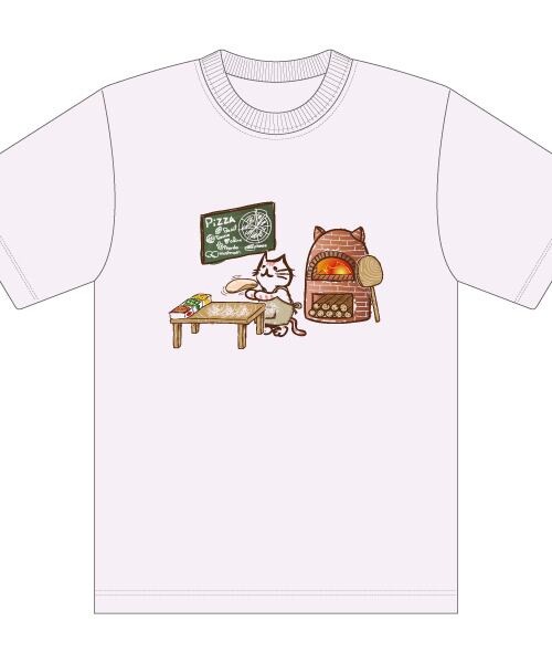 ピザ生地をこねているネコ、ネコ型の窯で焼きあがる出来立ての猫ピザをご賞味ください!