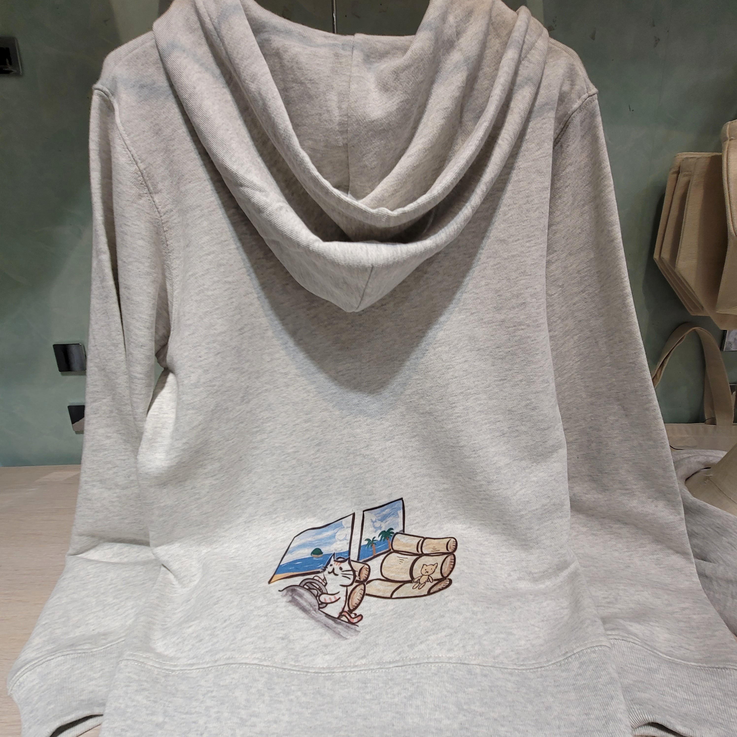 ドライブねこ メンズ ジップアップパーカー