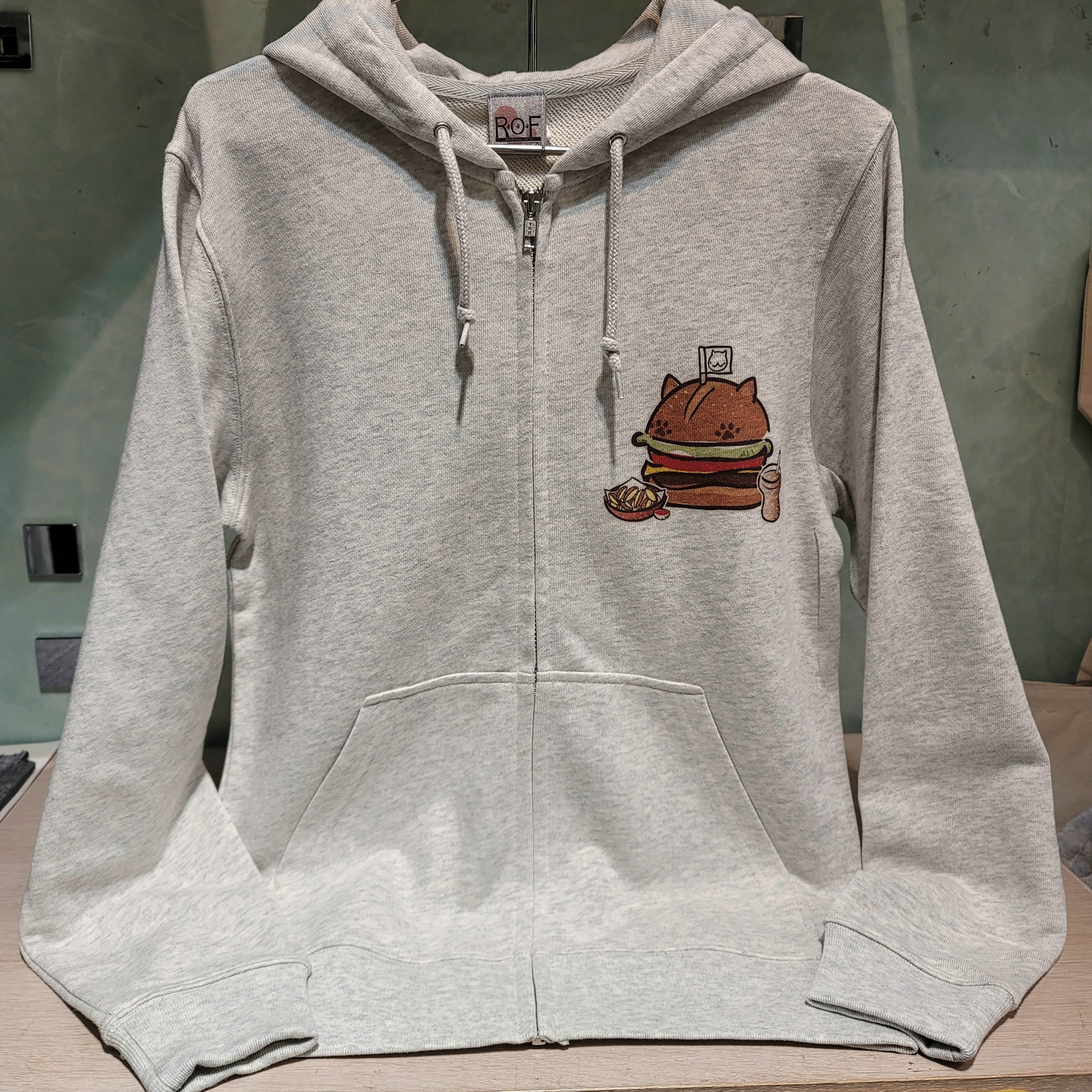 ハンバーガーねこ レディース ジップアップパーカー