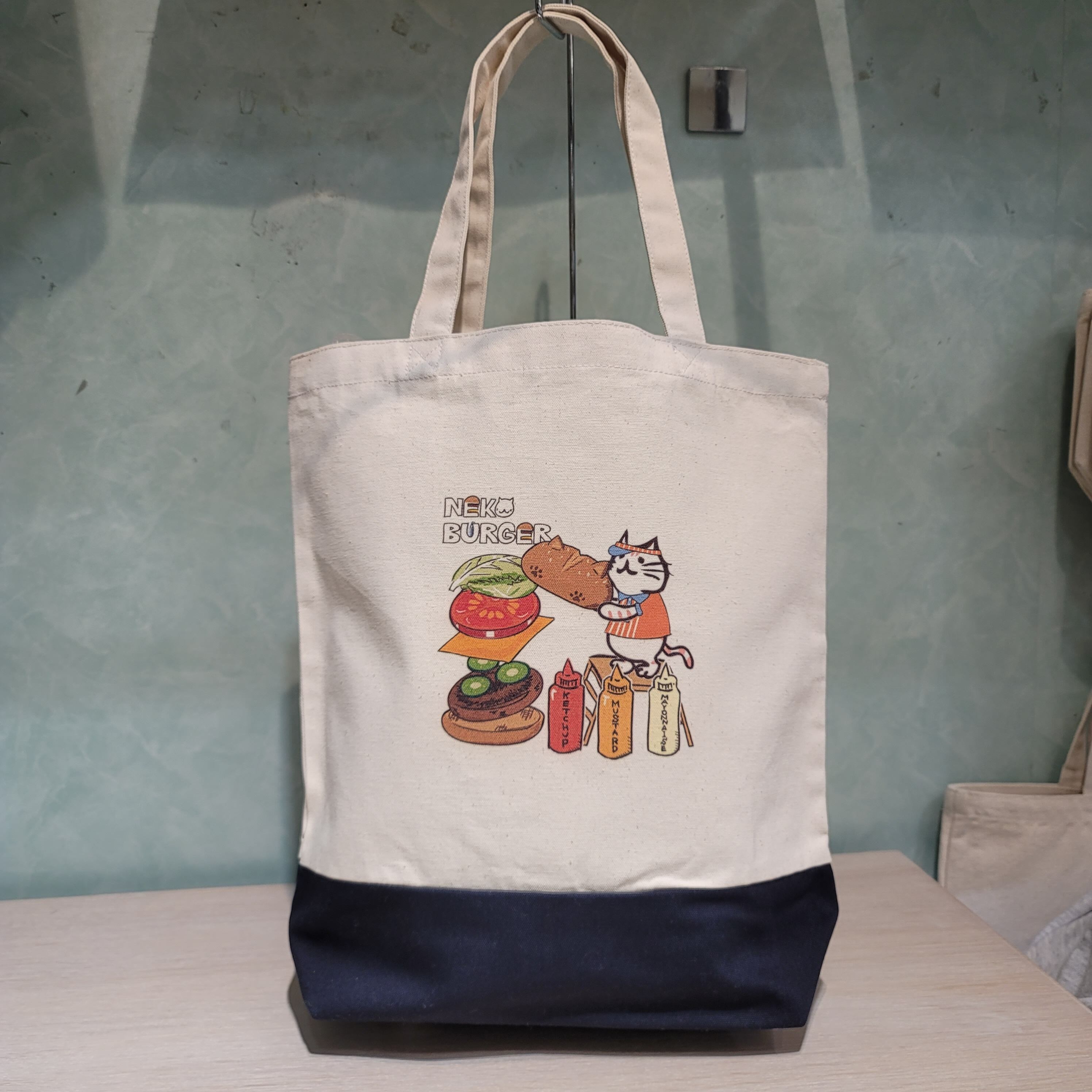 ハンバーガーねこ 10ozキャンバス 2tone トートバッグ