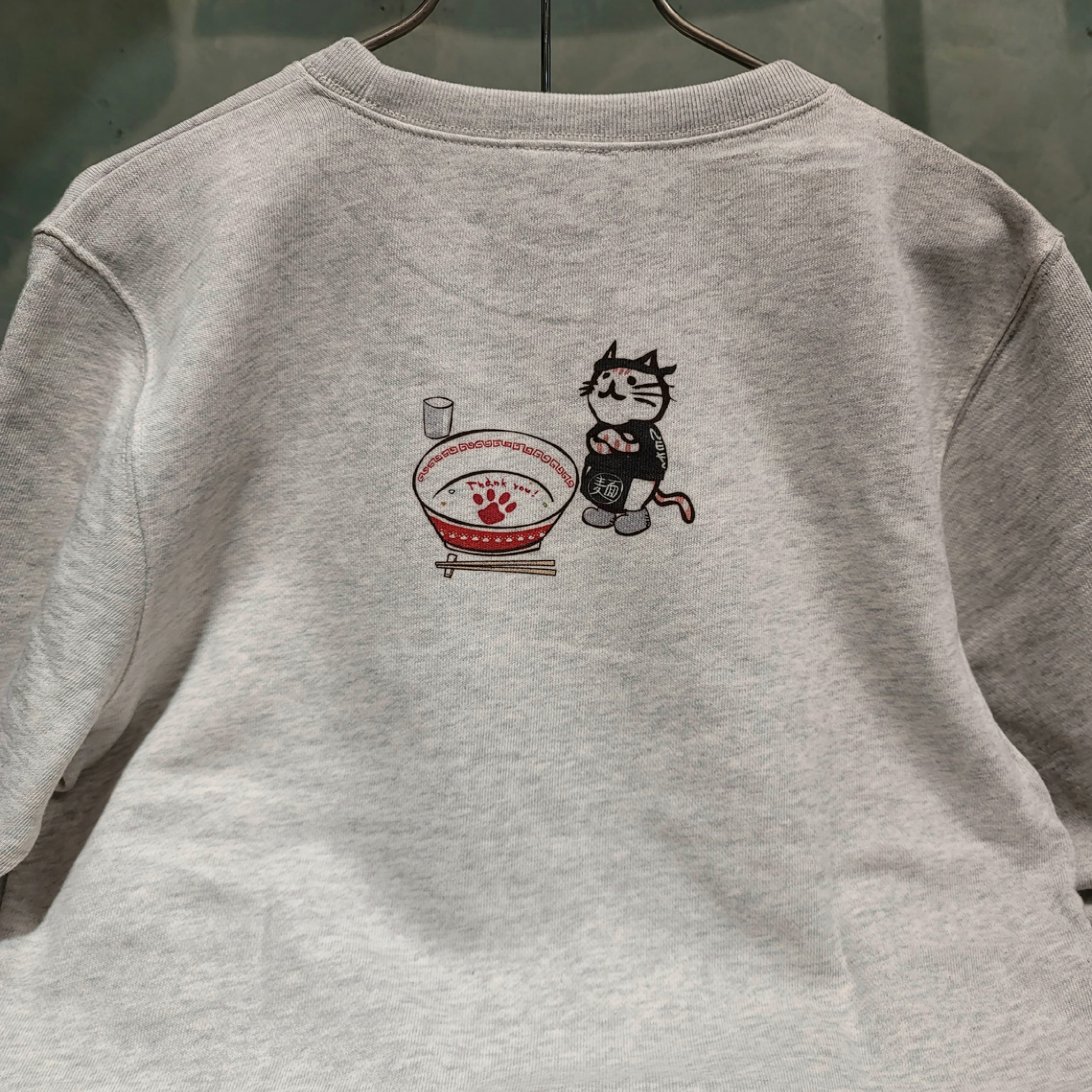 ラーメン屋さんの大将になったネコ、自慢のラーメンをスープまで完食されて大満足で腕組みポーズしています!!