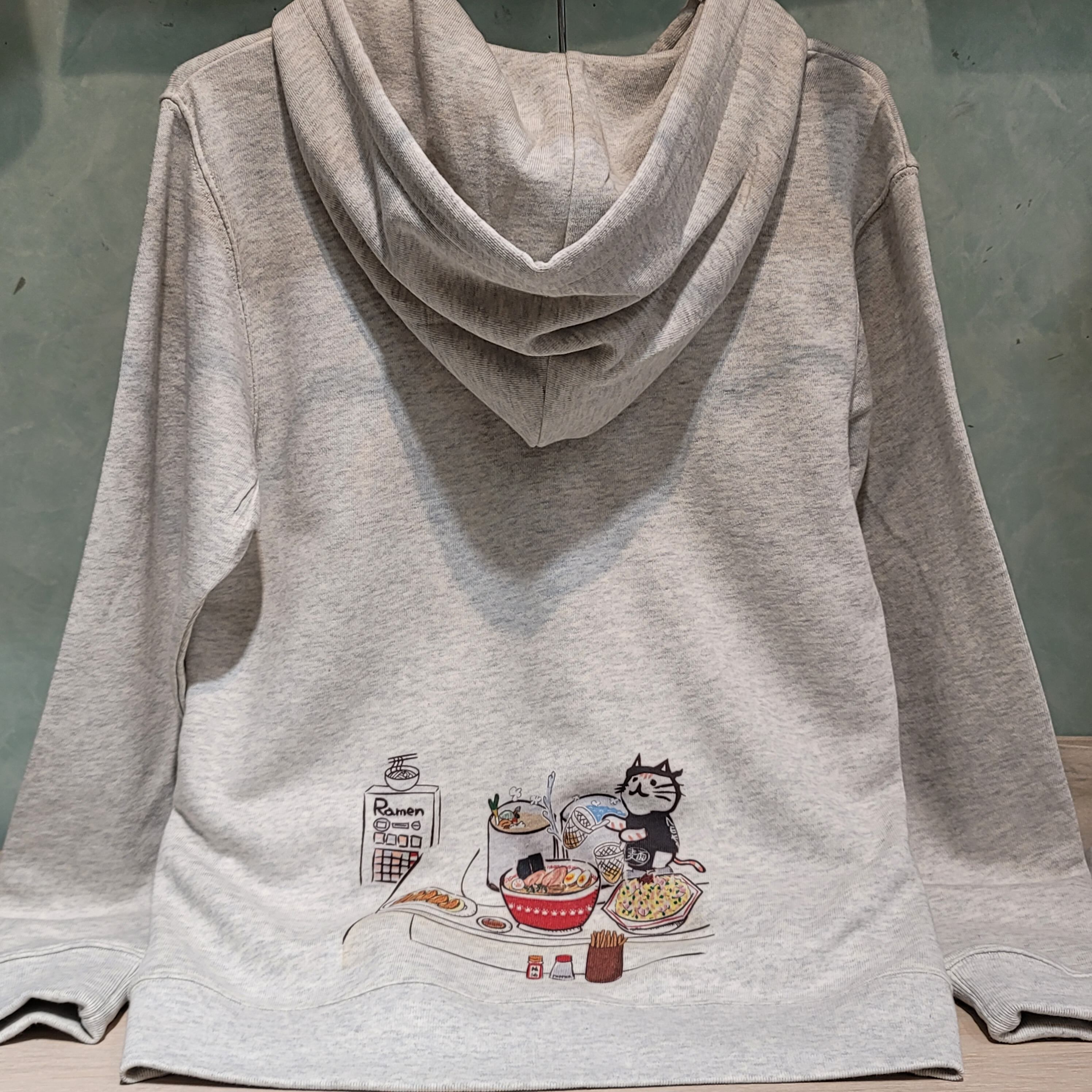 ラーメン屋さんの大将になったネコ、自慢のラーメンをスープまで完食されて大満足で腕組みポーズしています!!