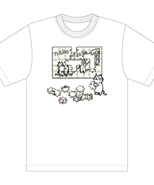 ジグソーパズルをしているネコ、でも最後のワンピースが・・・!