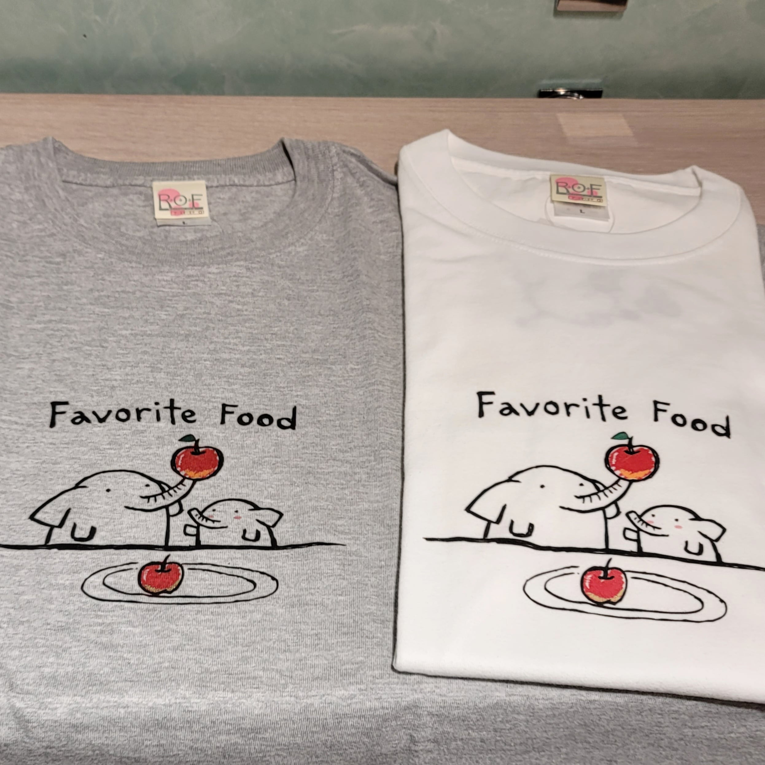 お母さんゾウが子ゾウに好物のリンゴをあげています♡